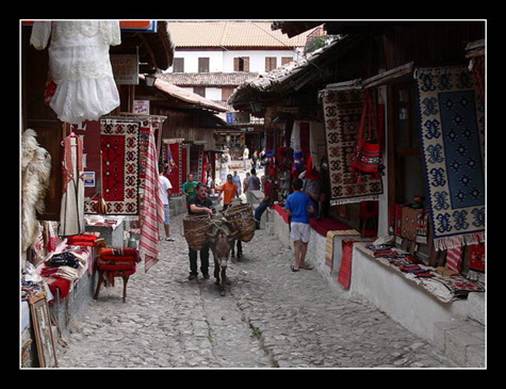 památná svatyně muslimského řádu bektašů (Dollma teqe). Bazar v uličkách pod